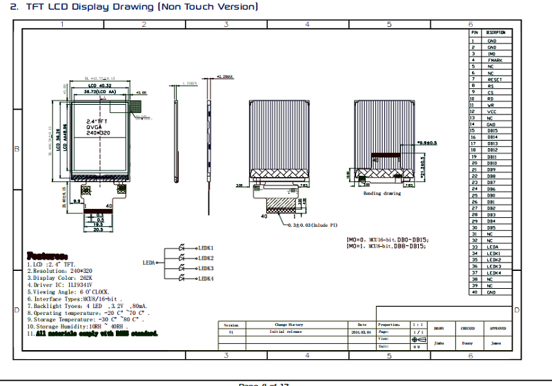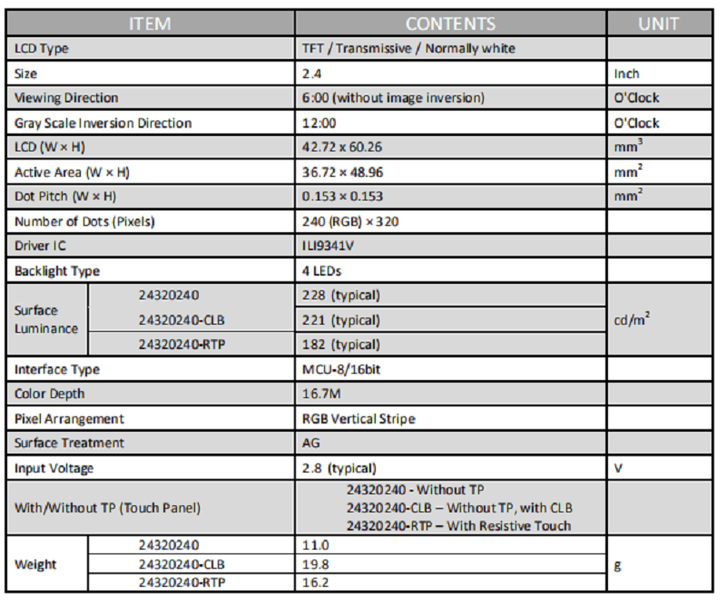 品名:  2.4寸電阻觸摸顯示屏