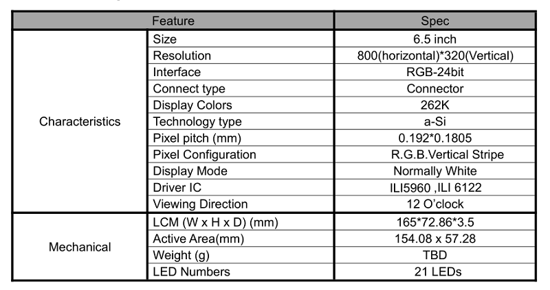 > 產(chǎn)品中心 > 定制液晶屏 > 6.5寸長條屏