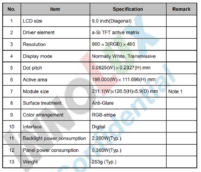 品名: 9寸普清液晶屏